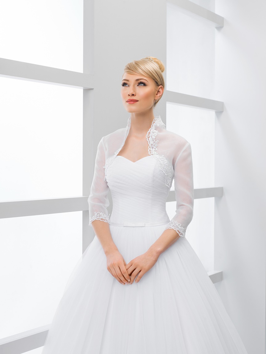 Etole et Boléro » Boléro étole châle de Mariée » Boléro Mariage organza » Boléro en organza avec dentelle manches 3/4