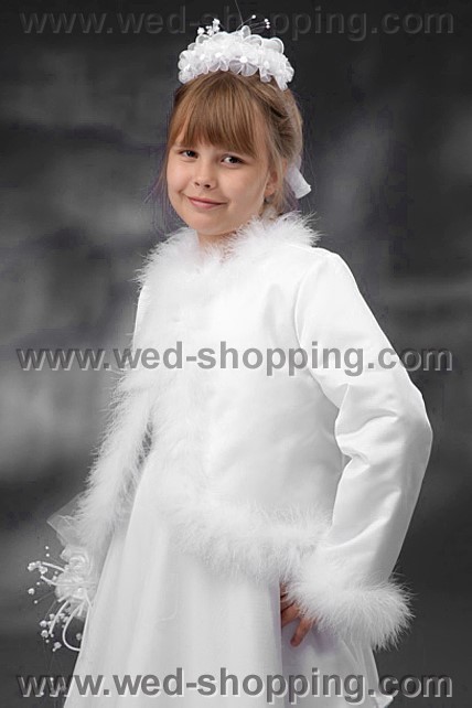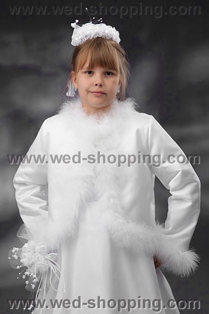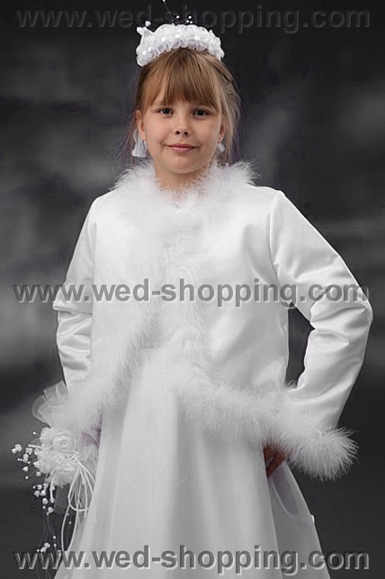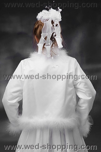Très belle veste en satin, doublée, finition plumes, avec manches.Taille : S, M pour les filles de 8 à 11 ans. S - 128-134 cm growth M - 140-146 cm growth