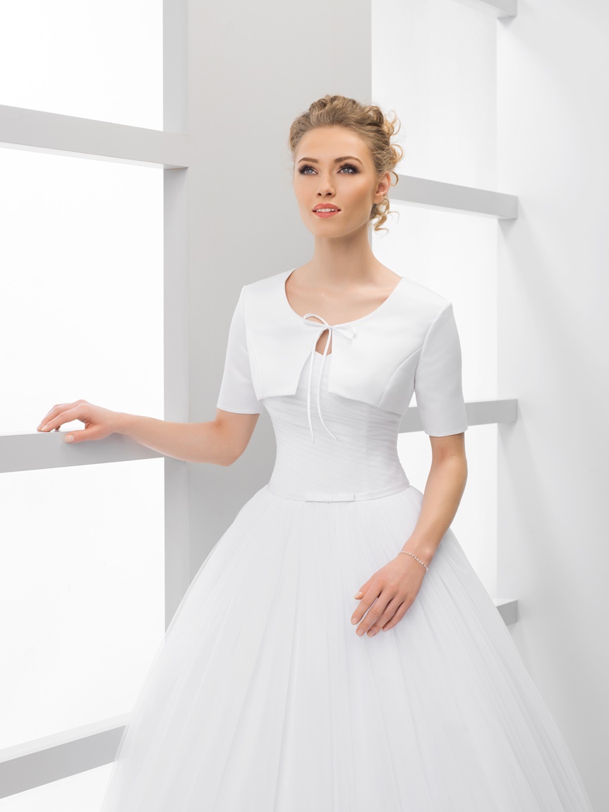 Satin Boléro avec manches (2/3). Disponible en blanc et ivoire. Taille : S-6XL. Boléro mariage satin manches