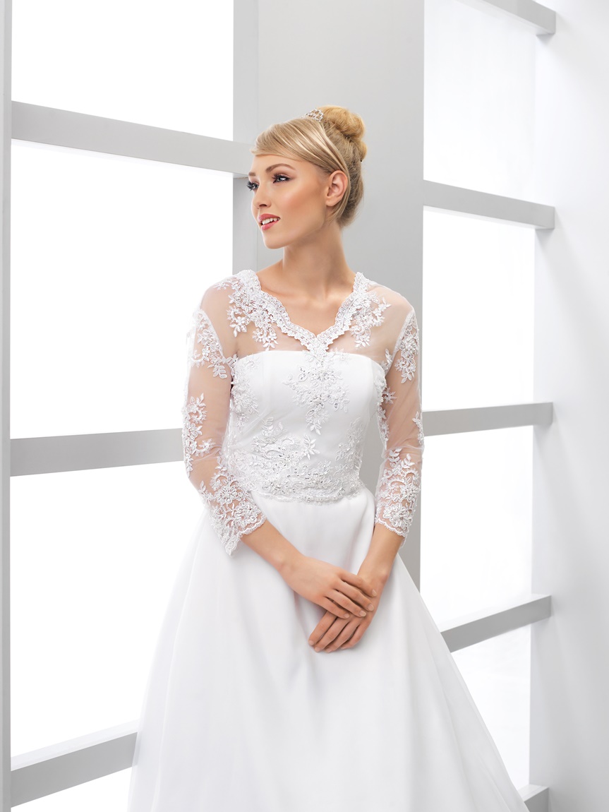 Boléro en dentelle avec perles et paillettes - boutons, manches longues
