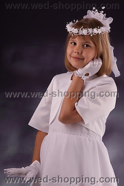 Superbe boléro de communion avec manche courte. Disponible en blanc et ivoire. Tailles disponibles : S,M. S - 128-134 cm growth M - 140-146 cm growth