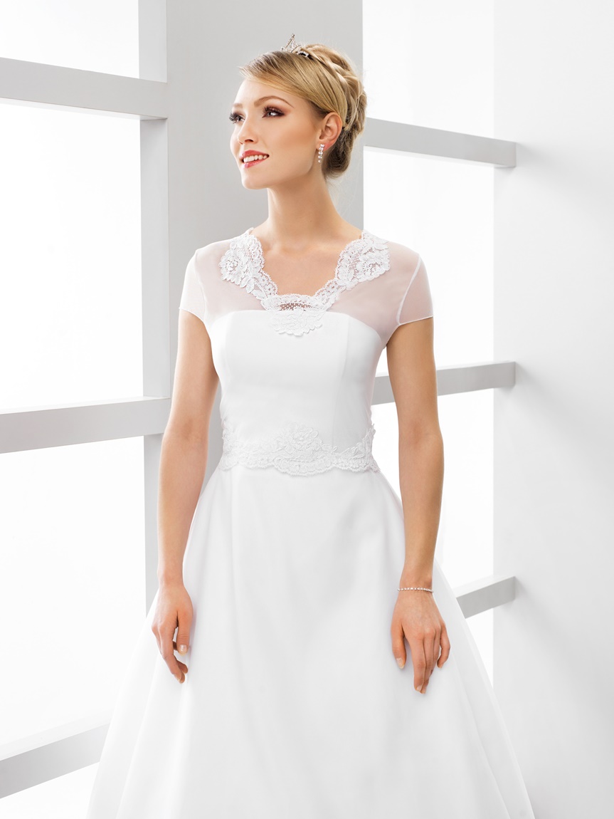 Tulle Boléro veste avec manches courtes Matière : Stretch tulle. Disponible en blanc et ivoire Taille : S/M,L/XL,XXL/XXXL,4XL/5XL,6XL/7XL (Übergröße) Haute Qualité Fabriqué en EU Boléro tulle manches courtes
