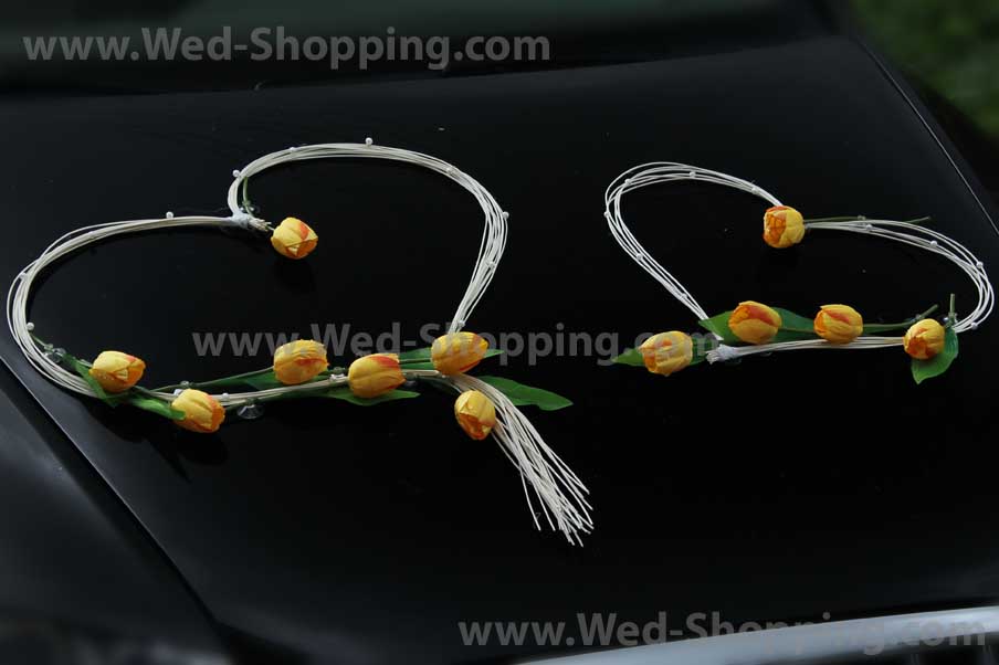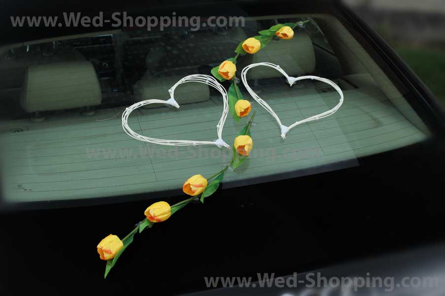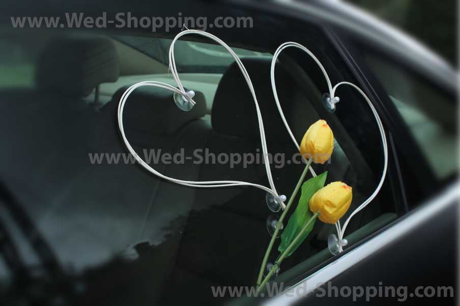 Une décoration unique pour votre voiture. 2 grands coeurs décorés avec des perles (montés sur une ventouse) 2 coeurs sur la vitre arrière - perles (avec ventouses) 4 coeurs sur les côtés de la voiture (avec ventouses) Ensemble de tulipes avec des ventouses. Toute la décoration est fixé à la ventouse. Ventouses ne pas endommager la peinture de voiture et tiennent fermement la décoration. La décoration est sans danger pour la peinture de voiture.