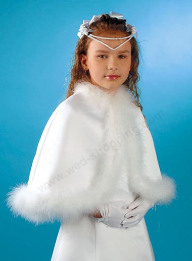 Cape pour fille Première Communion, mate, finition plumes. Matière : satin/polaire