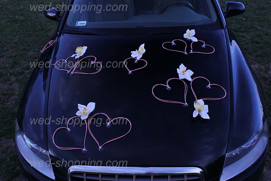 Immergez-vous dans un monde de rêve avec notre magnifique décoration de voiture de mariage. Imaginez-vous conduisant vers le bonheur éternel, entouré de coeurs roses et d'orchidées blanches éclatantes. Les 24 coeurs en rotin ajoutent une touche romantique, tandis que les 12 orchidées blanches apportent une élégance intemporelle à votre véhicule.