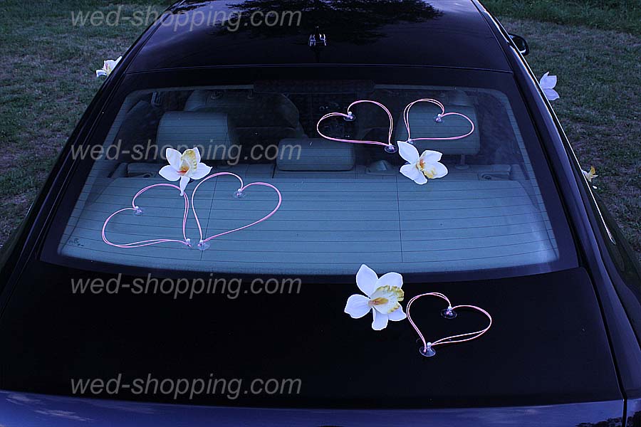 24 coeurs - rotin 12 orchidées blanches Sûr de décoration pour la peinture de voiture Les ventouses sont incluses dans le kit de décoration