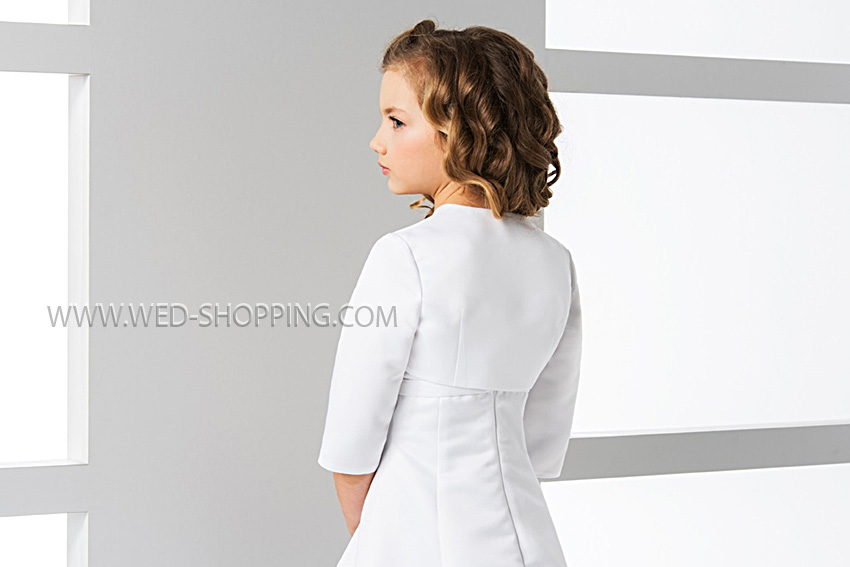 Superbe boléro de communion avec manche. Disponible en blanc et ivoire. Tailles disponibles : 122-158 Livraison: environ 10 jours