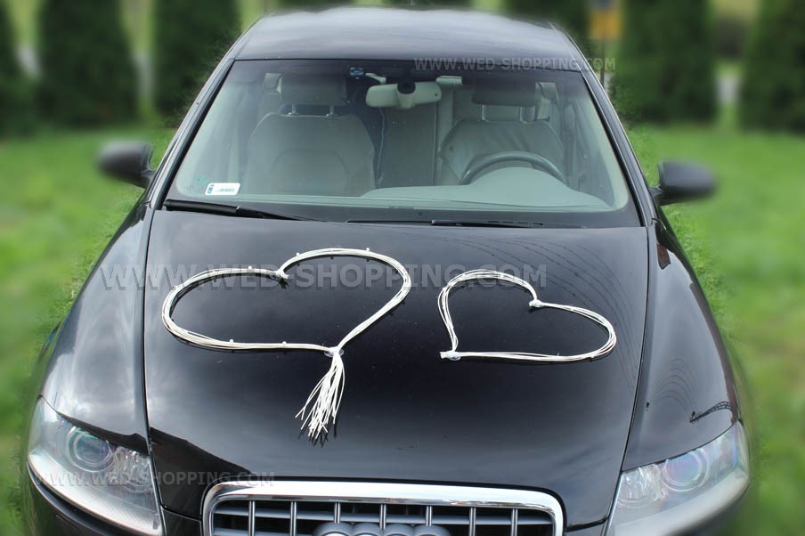 Une décoration unique faite de rotin Le kit se compose de: - Deux grands coeurs avec une largeur denviron 60 et 45 cm sur le capot Tous les éléments sont équipés de ventouses qui maintiennent fermement les décorations sur la voiture. Grande coeurs sont décorées avec des perles artificielles.