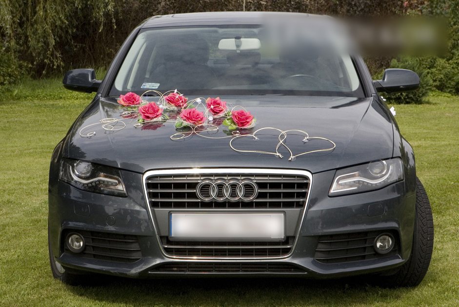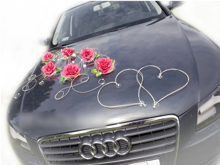 Dans les photos, nous avons montré la décoration sur une voiture Audi, cependant cet ensemble convient parfaitement à la décoration de n'importe quelle voiture dans laquelle les jeunes mariés se rendront à leur mariage. Si vous pensez que la couleur de la décoration ne correspondra pas tout à fait à la couleur de votre voiture ou au thème principal du mariage, vous pouvez choisir une autre couleur de fleurs. Veuillez consulter nos autres ensembles de décoration.