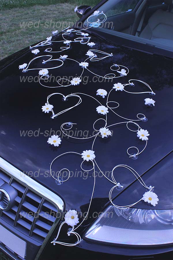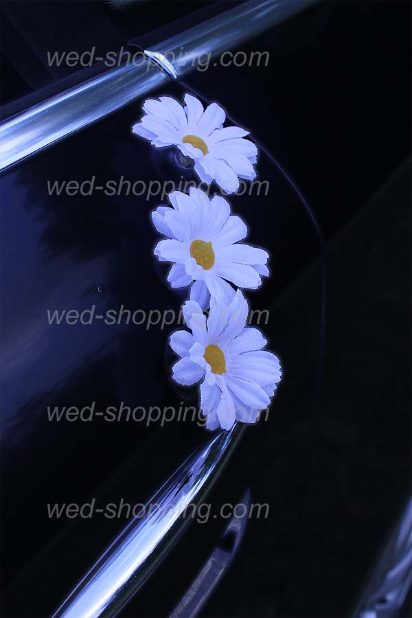 N'hésitez plus, cette décoration exclusive est seulement disponible dans notre boutique. Faites de votre jour de mariage un moment inoubliable en décorant votre voiture avec ces magnifiques marguerites blanches.