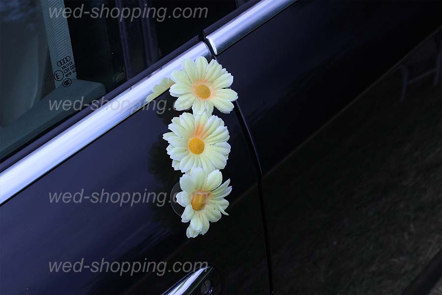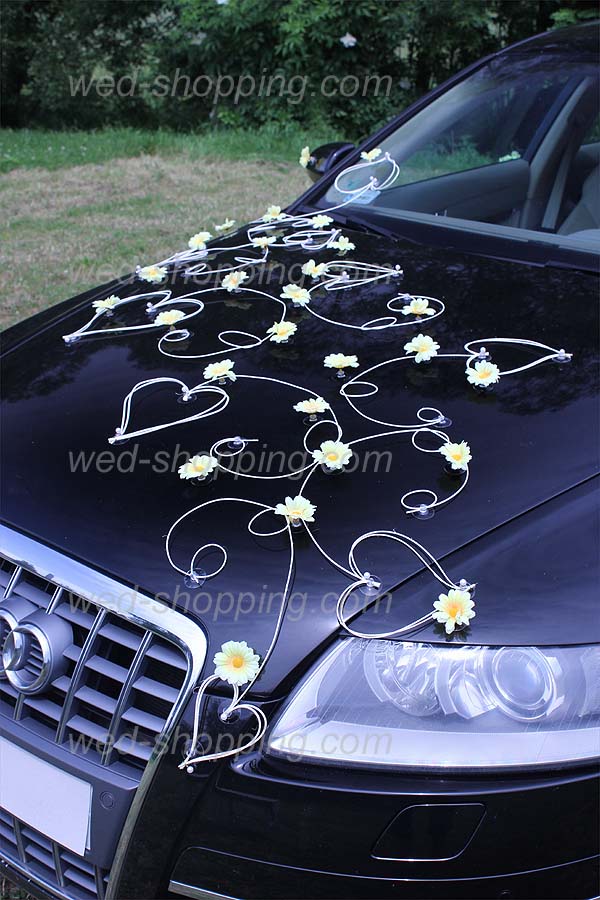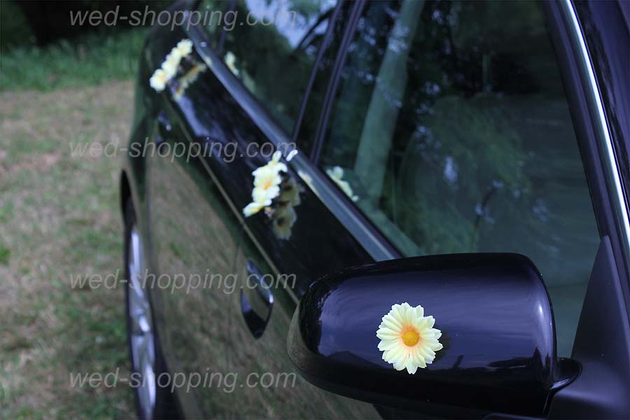 Avez-vous déjà vu une voiture aussi joliment ornée pour un mariage? Chez nous, vous trouverez cette décoration exclusive en jaune, blanc, orange et crème - mais avouez-le, rien n'égale l'éclat des marguerites jaunes! Conçues pour captiver tous vos sens, ces fleurs artificielles éveilleront une sensation de joie et d'émerveillement à chaque regard.