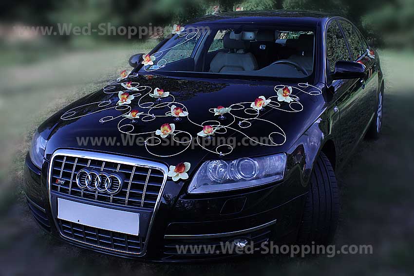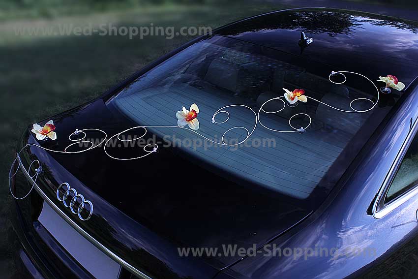 Décoration se compose de: 24 orchidées jaunes 12 brins de rotin avec des perles Sûr de décoration pour la peinture de voiture Les ventouses sont incluses dans le kit de décoration