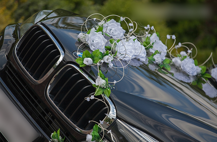 La décoration voiture de mariage se compose de nombreux éléments séparés qui peuvent être librement composés les uns avec les autres.