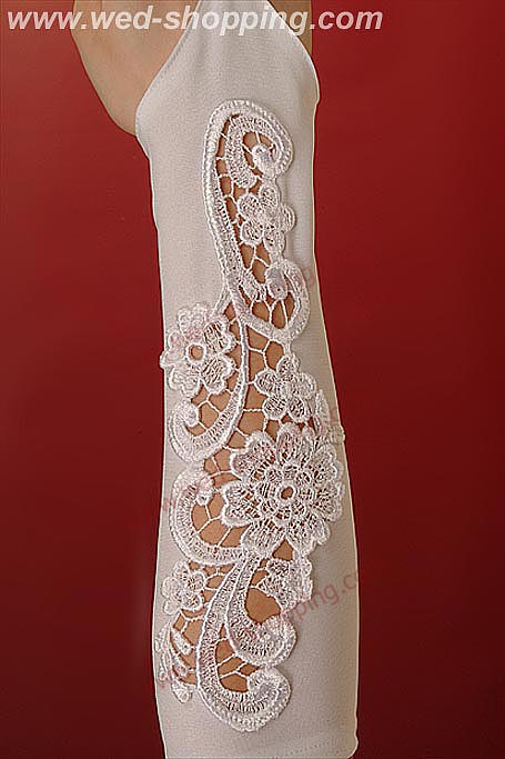 Modèle longueur ”jusqu’au coude” avec une belle application en guipure sur le dessus. Faits en satin extensible, brillant ou mat. Disponibles en blanc. Taille unique (convient à toutes les femmes).