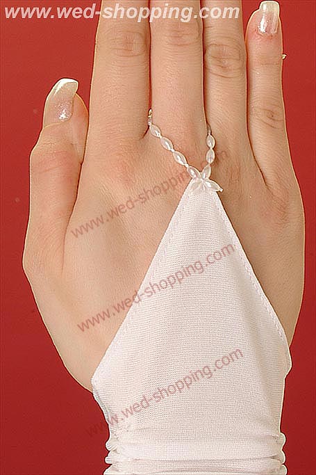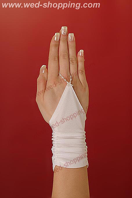 Gants courts avec double draperie. Disponibles en blanc et ivoire. Faits en satin. Taille unique.