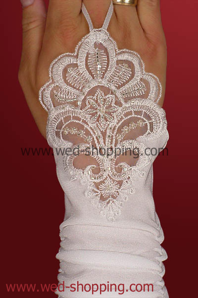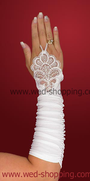 Gants sublimes pour la Mariée. Décoration avec strass en argent remarquable sur la main ainsi que la draperie rendent ce modèle très chic. Faits en satin extensible de haute qualité. Disponible en blanc et créme