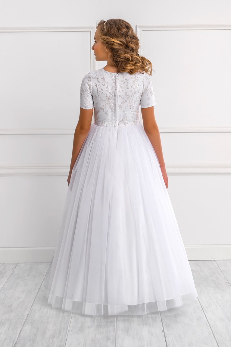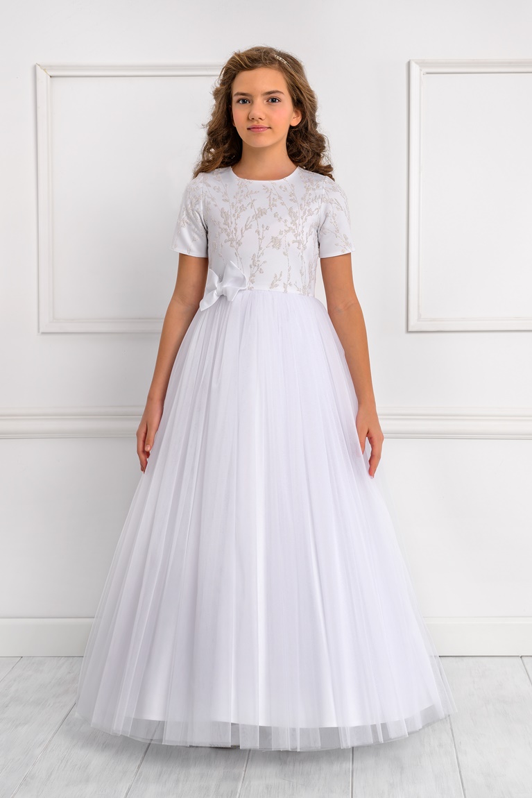 Avec son ourlet ample et élégant, cette robe longue sera la tenue parfaite pour les petites filles qui souhaitent briller lors de leur première communion.