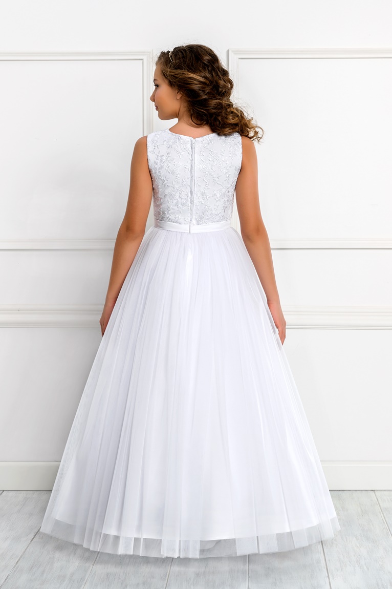 Avec son ourlet ample et élégant, cette robe longue sera la tenue parfaite pour les petites filles qui souhaitent briller lors de leur première communion.