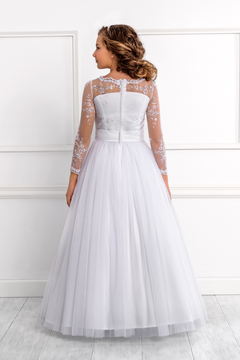 Avec son ourlet ample et élégant, cette robe longue sera la tenue parfaite pour les petites filles qui souhaitent briller lors de leur première communion.
