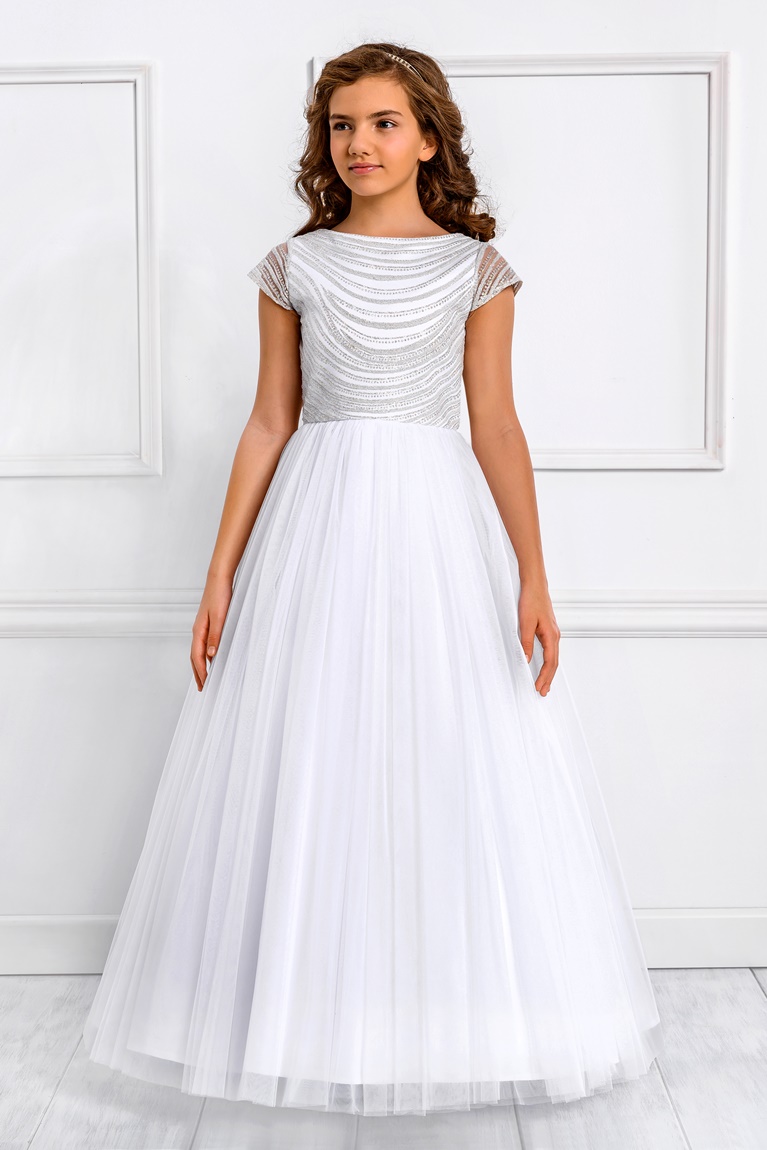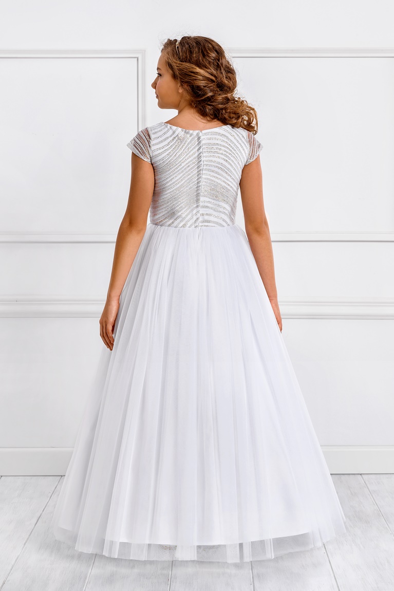 Avec son ourlet ample et élégant, cette robe longue sera la tenue parfaite pour les petites filles qui souhaitent briller lors de leur première communion.