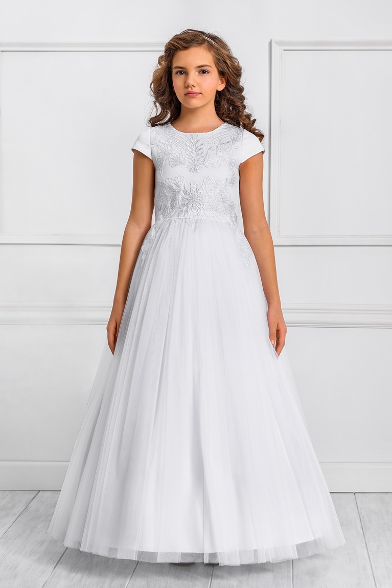Cette robe de communion est un choix élégant pour une journée spéciale.