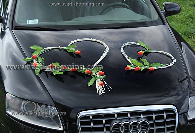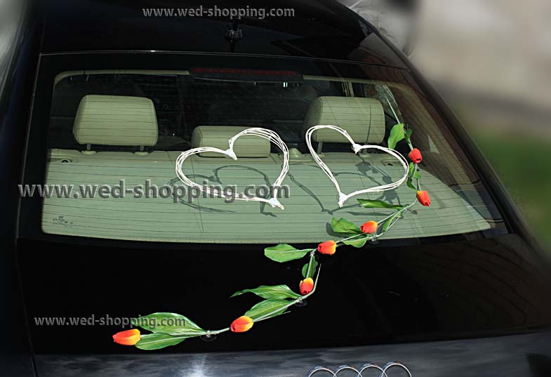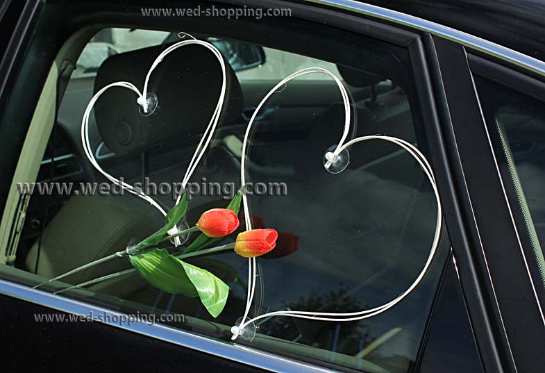 Imaginez-vous conduisant vers votre grand jour, entouré de 2 grands cœurs décorés de perles et montés sur des ventouses, ainsi que de 2 autres cœurs sur la vitre arrière et 4 sur les côtés de la voiture, tous fixés délicatement à des ventouses pour ne pas endommager la peinture de votre précieuse voiture.