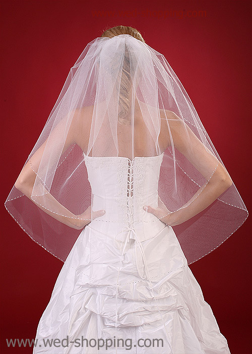Voile avec la paille en argent - 400 éléments brodé à la main Longueur: 90 cm Disponible en blanc et créme.