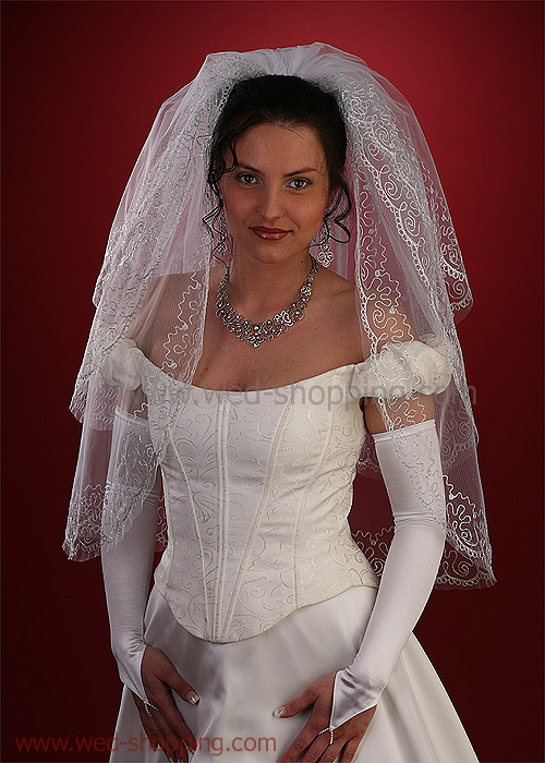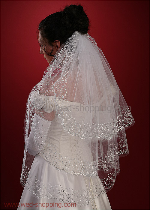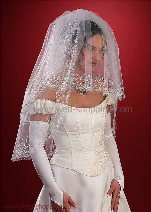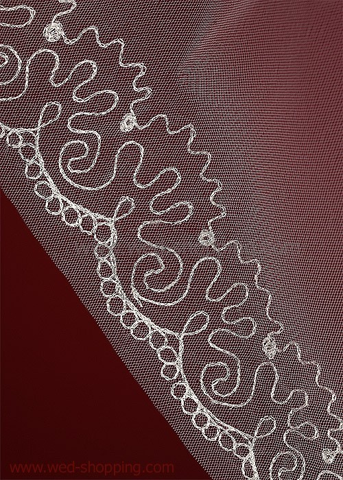 Voile de mariée de 90/70/60 cm de longueur et de 140cm de largeur. Finition en broderie dans le même coloris que le voile. Voile: blanc avec broderie blanche.