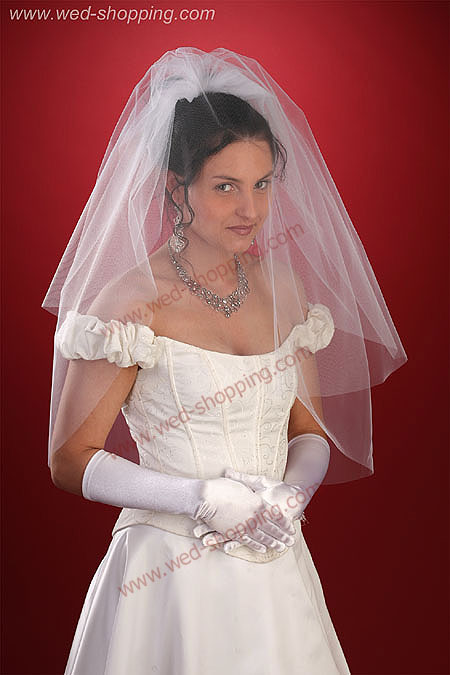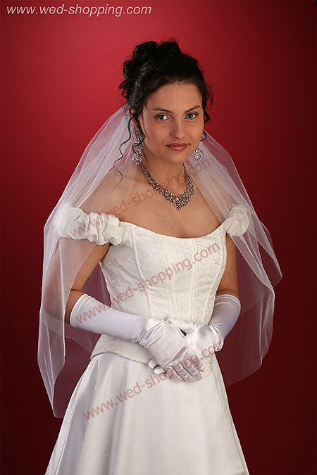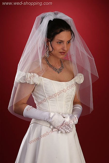 Voile brut, coupe sans finition, longueur à partir de 90/70cm et largeur de 140 cm. Il passe devant le visage. Pincé par un peigne. Disponible en blanc et crème.