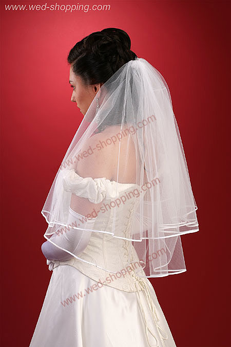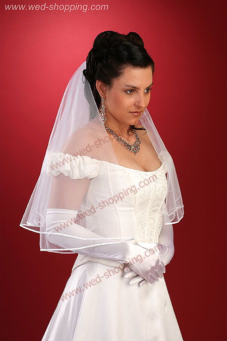 Somptueux voile de mariée, longueur : 70/60 cm et largeur : 2 m. Il s’harmonise parfaitement avec robes de mariées classiques. Coloris disponibles: blanc et ivoire (écru). Finition bordure en ruban.