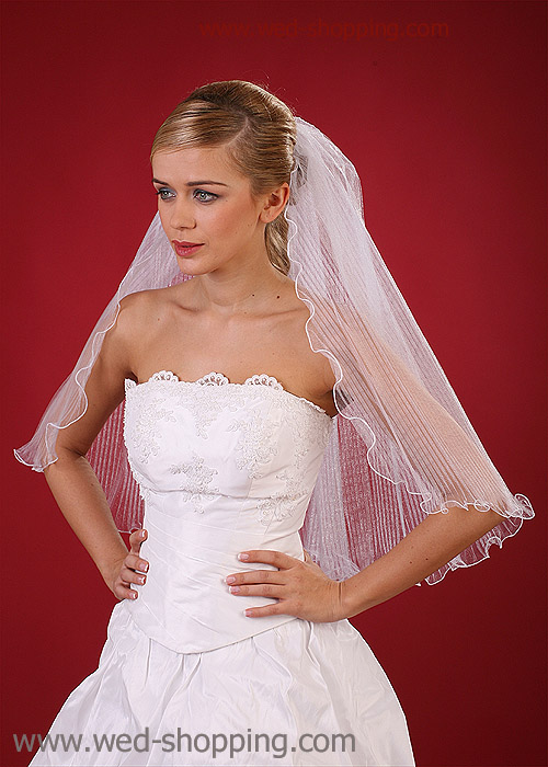 Voile - tulle plissé opalescent style espagnol Longueur:80 cm Disponible en blanc et créme.