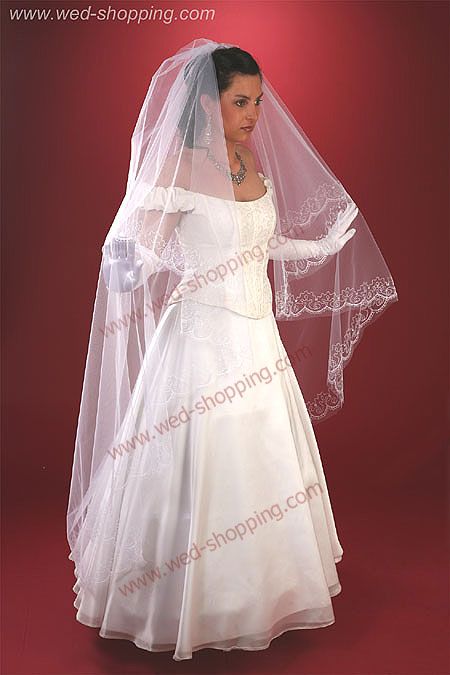 Voile de 170cm de longueur , coupe ronde 2,70m. Une broderie somptueuse le finit.